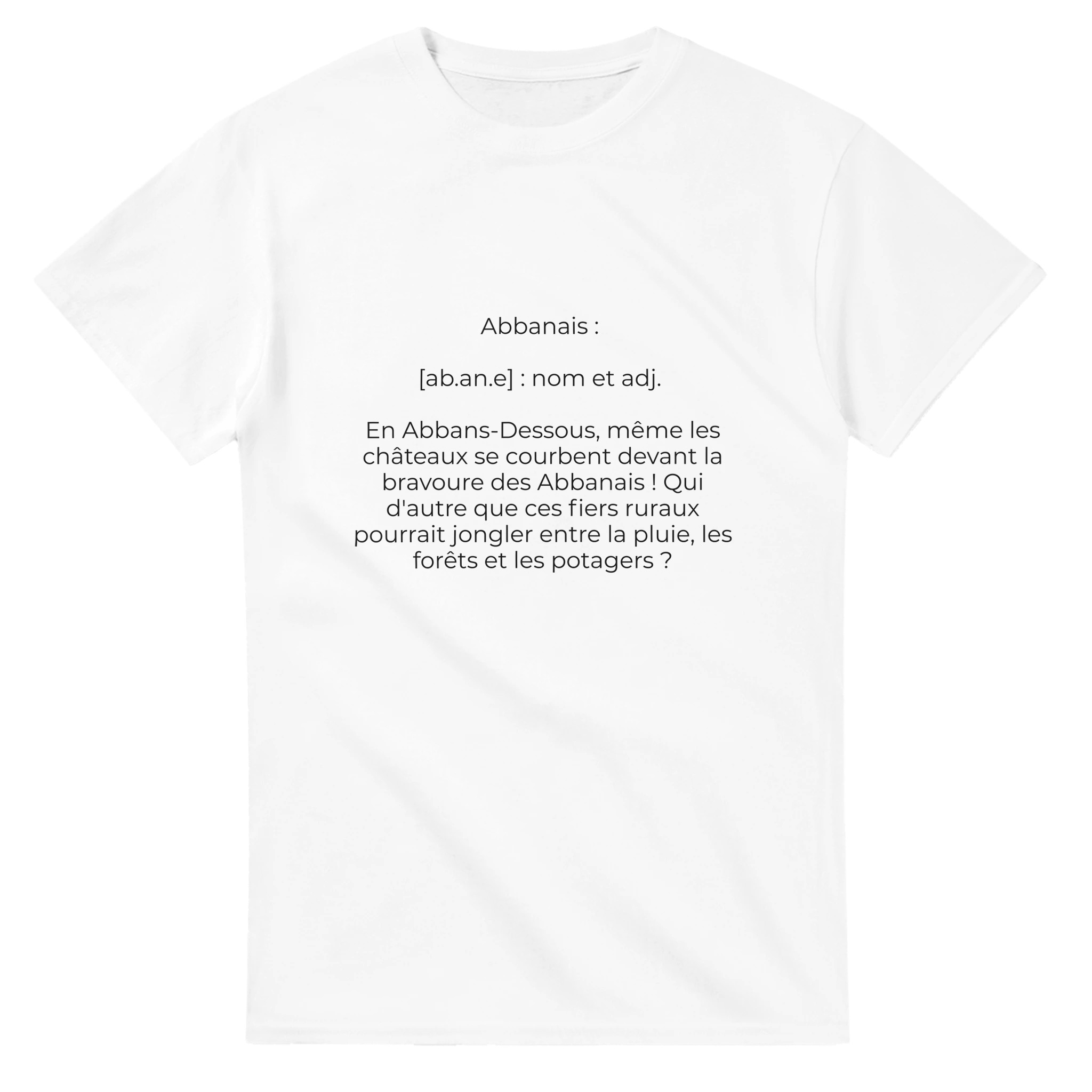 T-Shirt « Abbanais : la fierté sous la pluie, le chocolat dans le jardin ! » (Abbans-Dessous 25320)