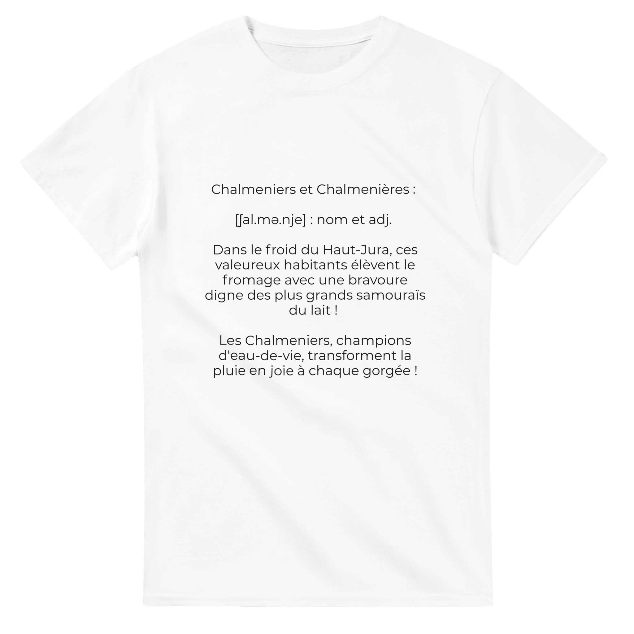 T-Shirt « Chalmeniers : guerriers du fromage et maîtres de l’eau-de-vie » (Les Chalesmes 39150)