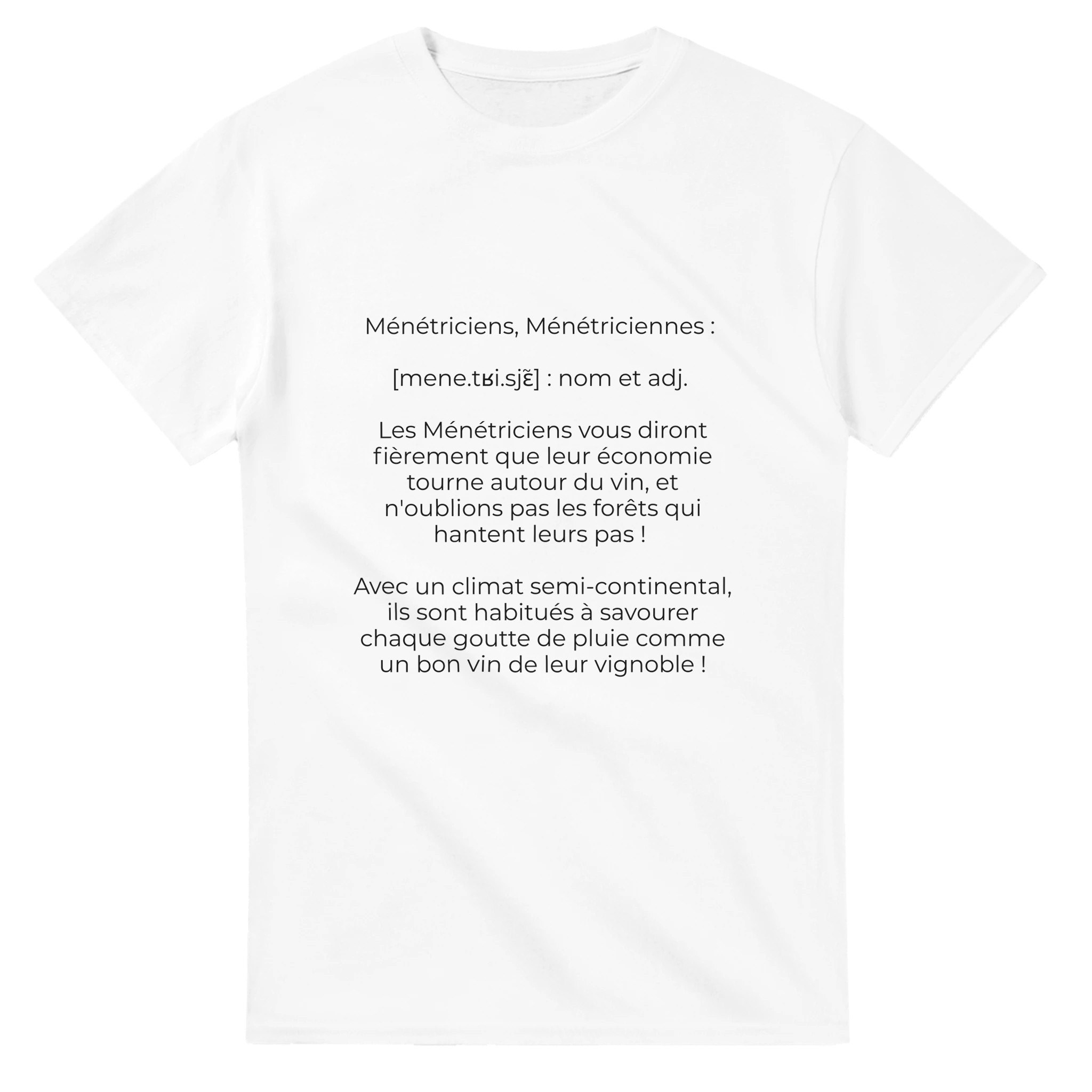 T-Shirt « Les ménétriciens : entre vigne et forêt, le terroir en fierté ! » (Menétru-le-Vignoble 39210)